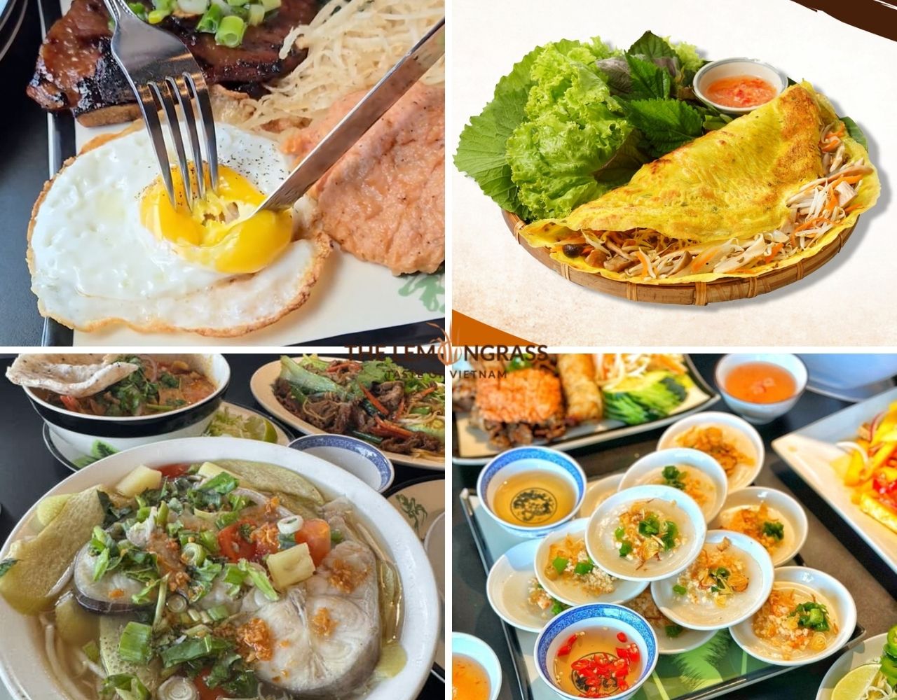 Grilled dishes are another common choice. Meats are marinated with lemongrass, garlic, and traditional seasonings before being grilled. They’re usually served with rice or vermicelli, along with herbs and fish sauce.